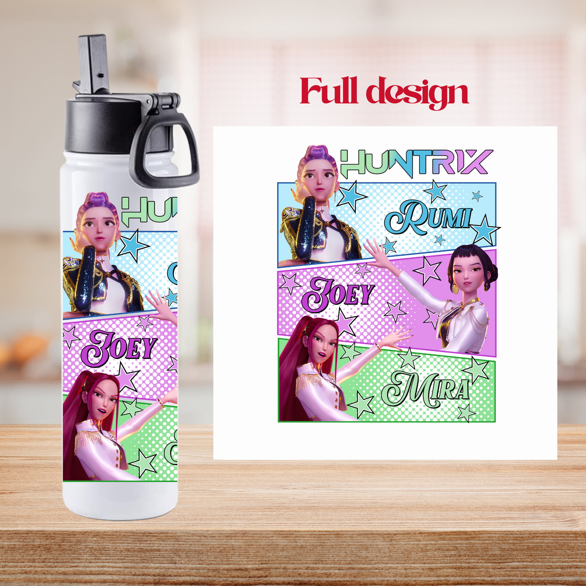 For all the K-pop Demon Hunter fans, this 22oz flip top water bottle is a must-have for school aged kids! With its customizable, stylish design, large capacity, and amazing color options, this water bottle is perfect for school, sports, and any other occasion. Don't miss out on this amazing opportunity to show off! Your friends will be jealous!